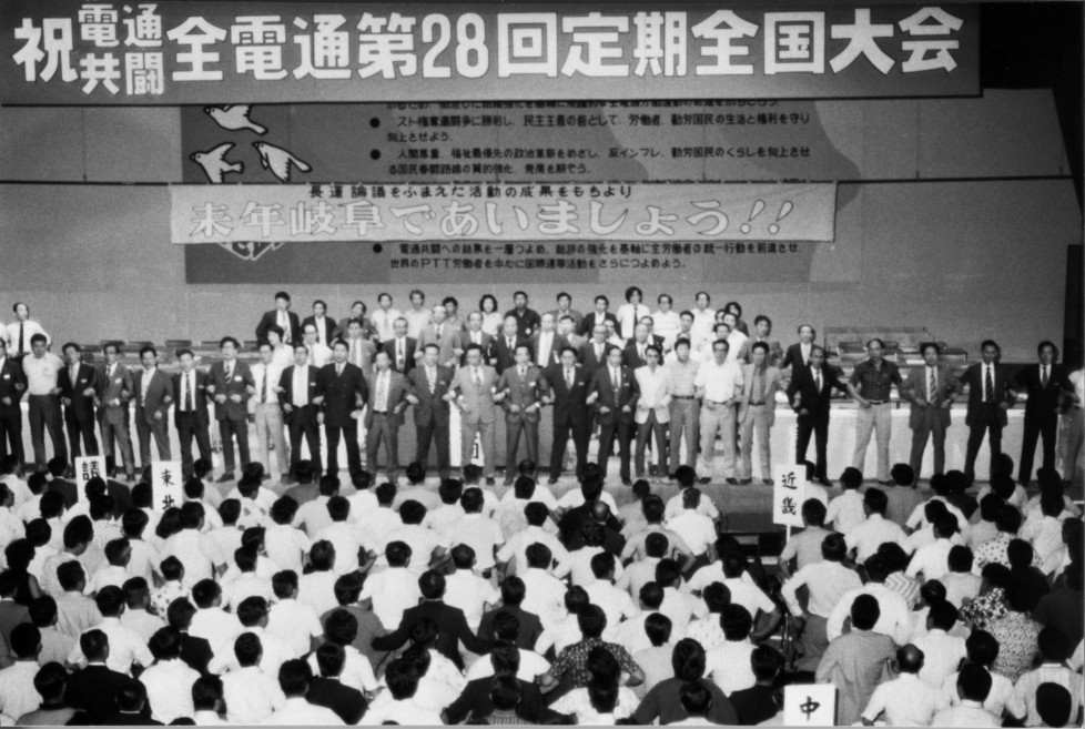 第2回定期全国大会。NTT労組歌“波よ輝け”を制定