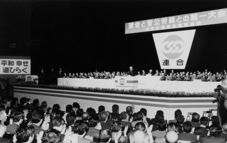 官・民統一した日本労働組合総連合会(新連合)が結成。山岸全電通委員長が初代会長に。総評は四十年の歴史にピリオド